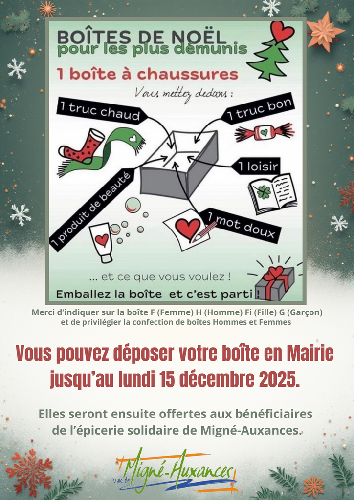 La commune de Migné-Auxances renouvelle la collecte des boîtes de Noël.