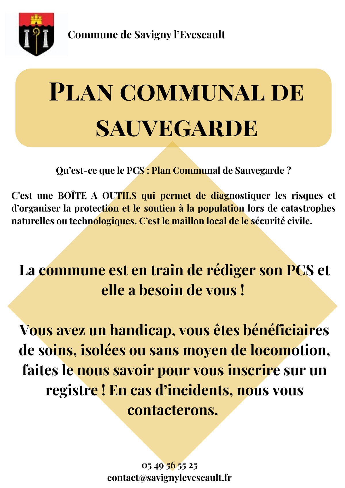 La commune est en cours d'élaboration de son PCS (Plan Communal de Sauvegarde) et nous avons besoin de vous