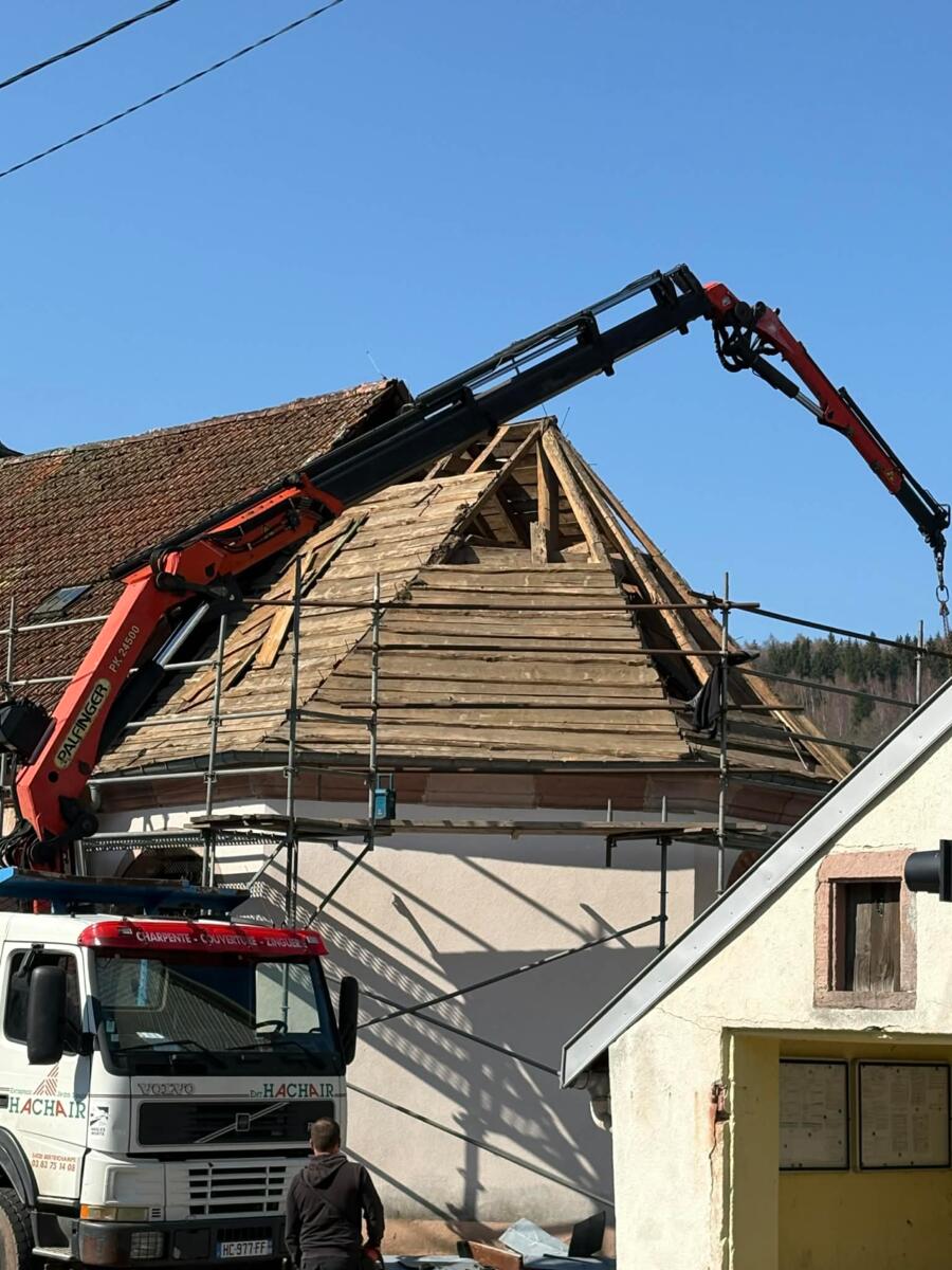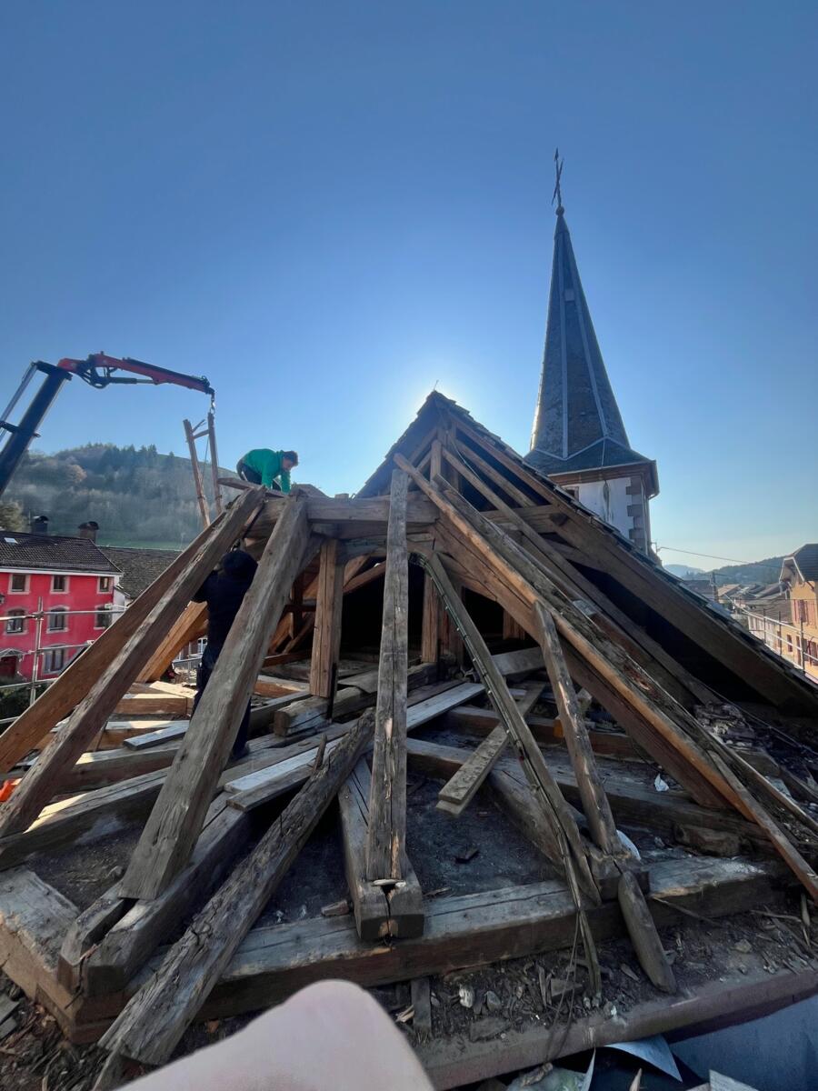 Dans l’intervalle, une charpente provisoire a été mise en place afin de protéger le bâtiment des éventuelles intempéries.