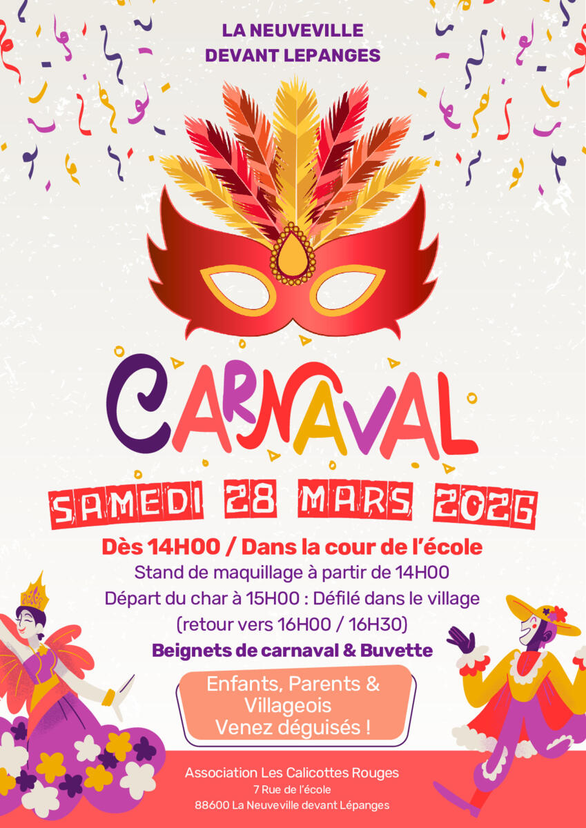Carnaval le 28 mars à partir de 14h