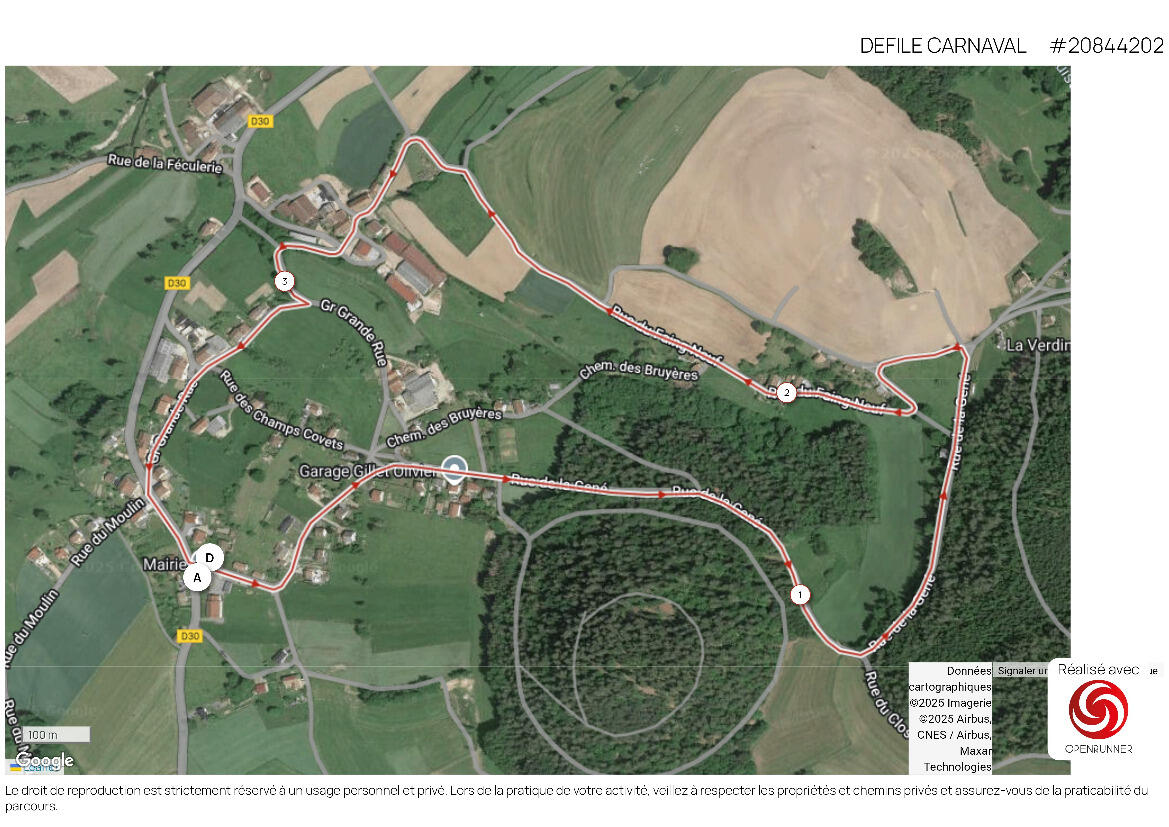 Départ du défilé vers 15 heures de l’école des 3 Villages, 2 A Rue de Bouillemont, puis : Rue de Bouillemont, Rue de la Gêne, Au Faing Neuf, A Grémonménil, Grande Rue, Rue de l’école, et arrivée du défilé devant l’école des 3 Villages vers 16 heures 30 maximum.