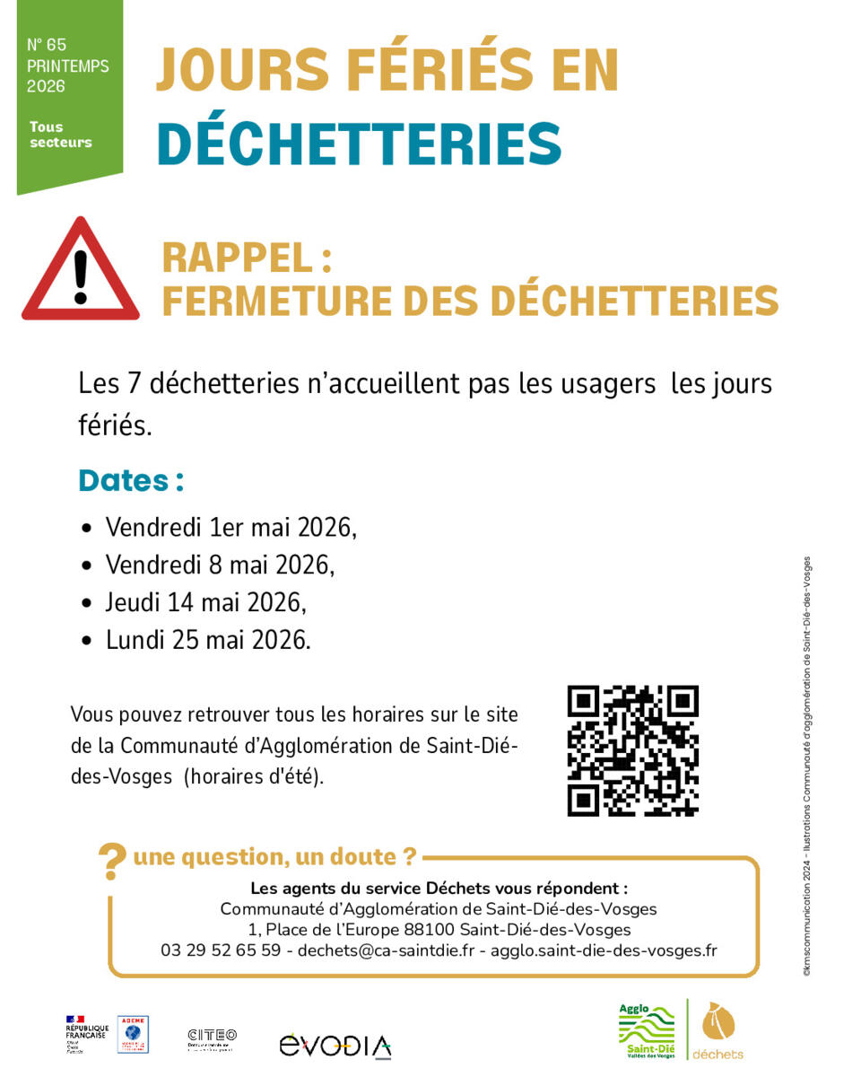 JOURS DE FERMETURE DES DECHETTERIES EN MAI - jours fériés