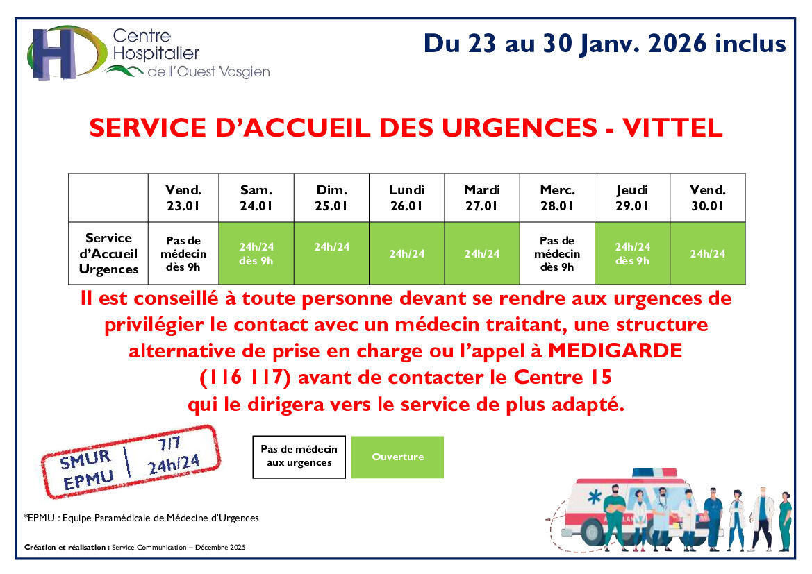 Planning d'ouverture des urgences de Vittel