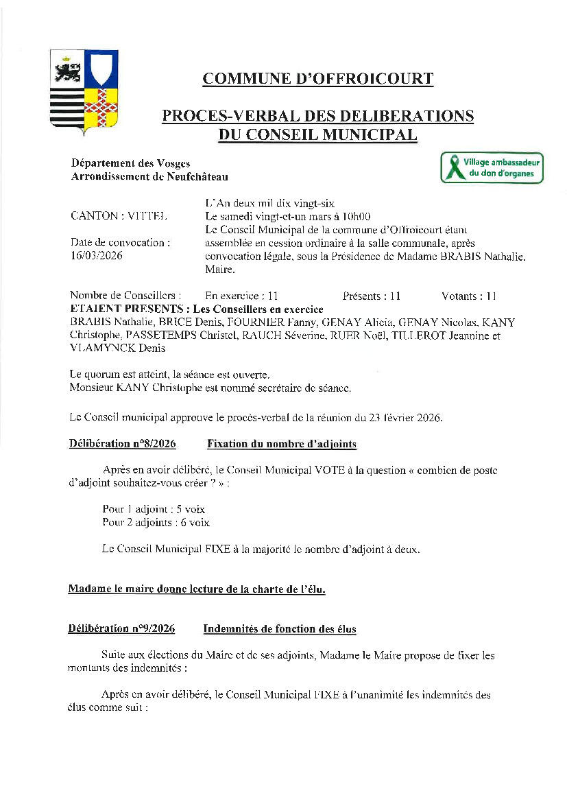 Vous trouverez en pièces jointes le compte rendu et procès-verbal de la réunion du Conseil municipal en date du 21 mars 2026.