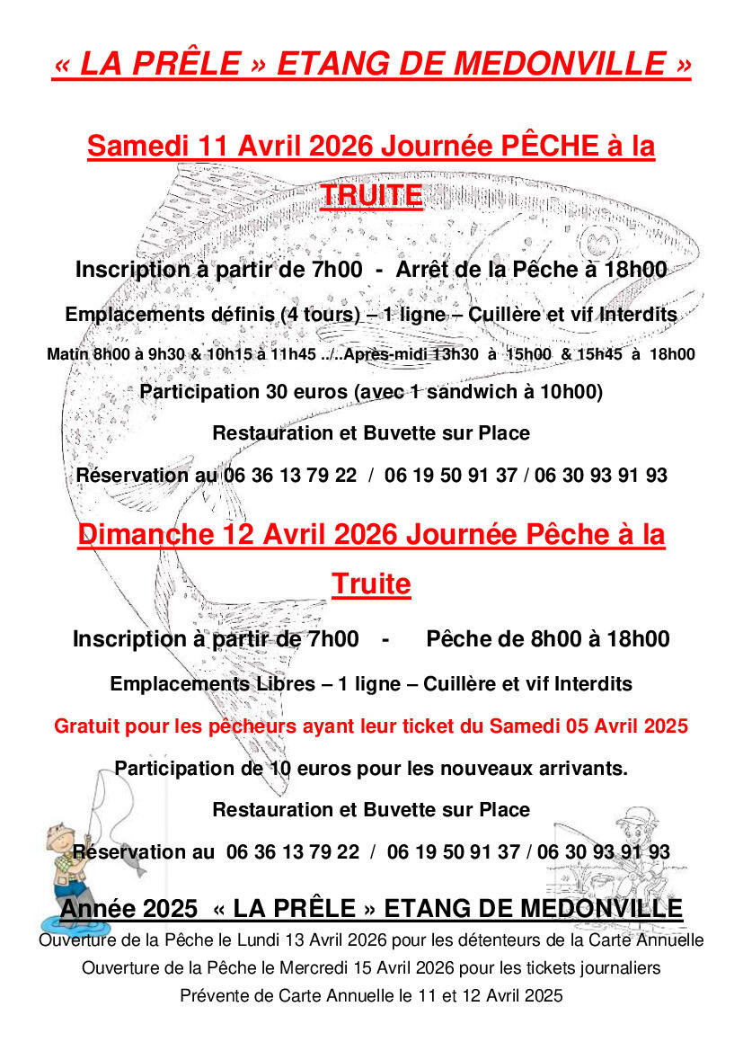 Veuillez trouver ci-joint une affiche concernant la pêche à la truite à Médonville.