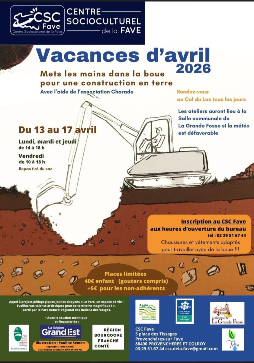 Le Centre SocioCulturel de la Fave propose un accueil pendant les vacances de Printemps. Derniers jours pour s’inscrire...(date limite : 10 avril 2026 à 11h30).