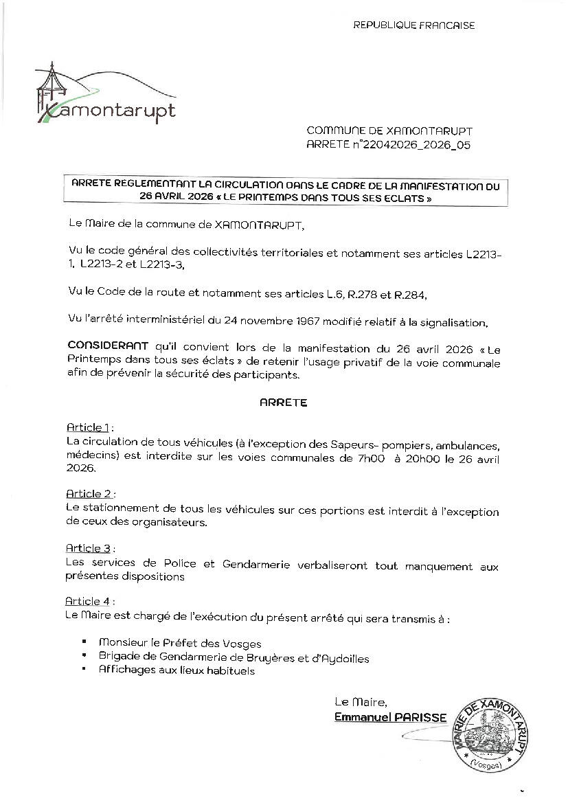CIRCULATION VILLAGE - MANIFESTATION DU 26 AVRIL 2026