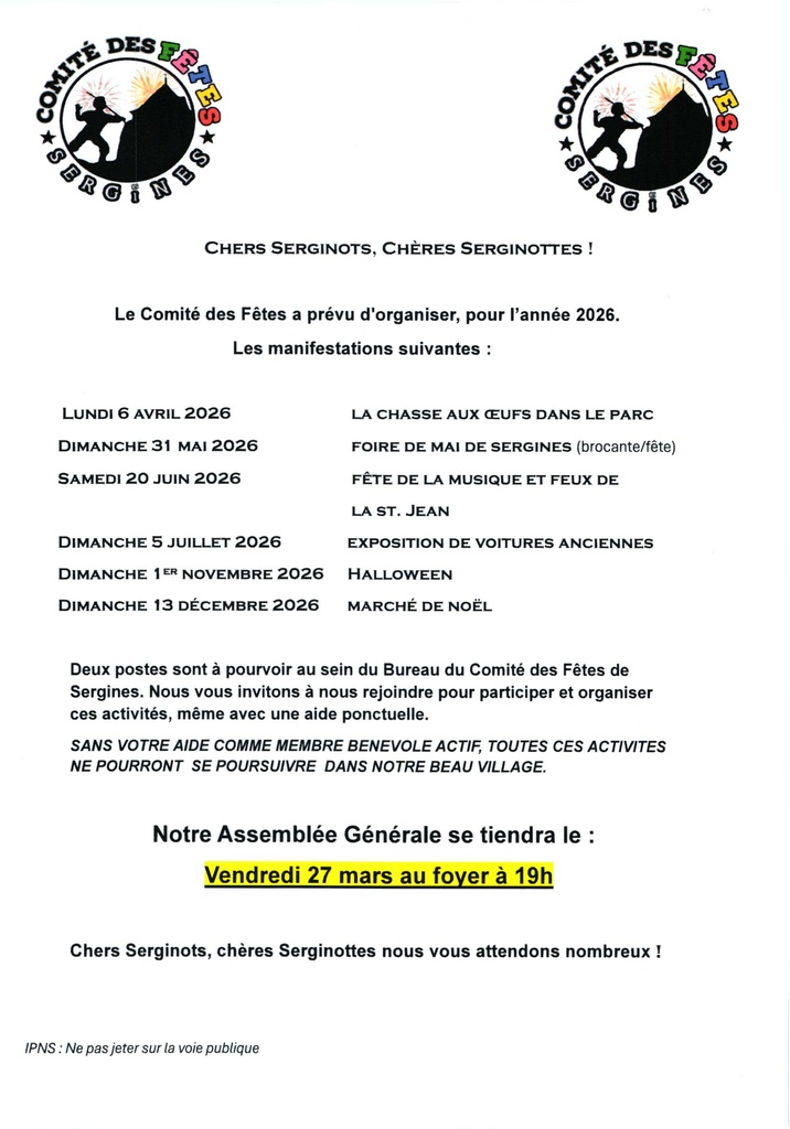 Le Comité des Fêtes a toujours eu à cœur d’animer notre commune et de proposer des moments de partage pour tous. Malheureusement, sans bénévoles, ces activités ne pourront pas être maintenues.