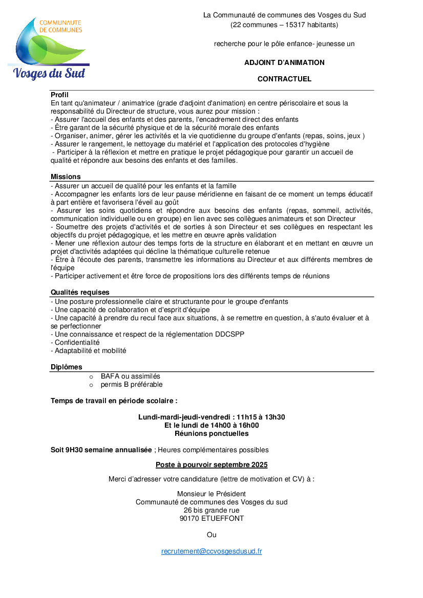 Information secteur jeunes centre socioculturel Haute Savour