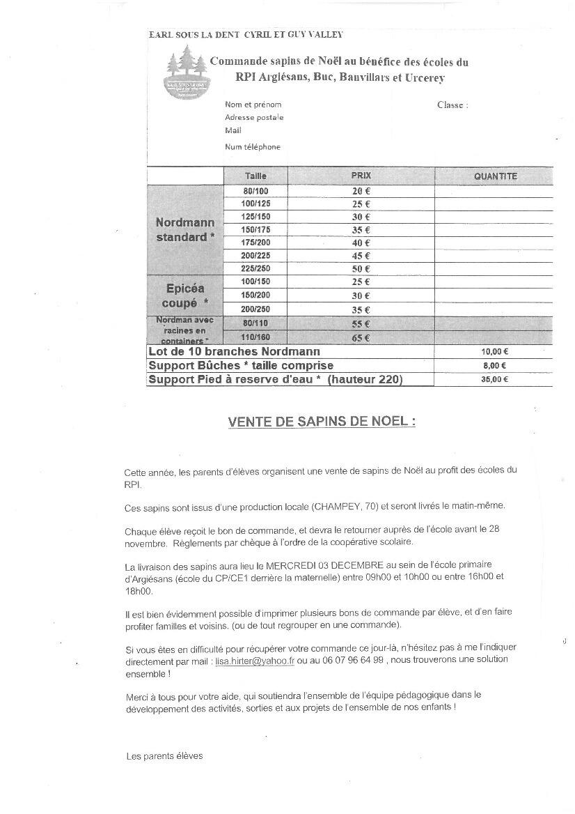 vente sapins de Noël au profit des écoles du RPI