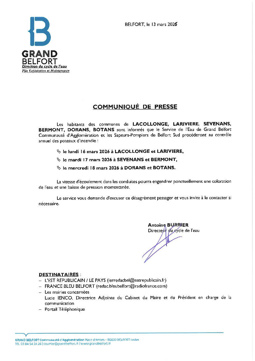 Le contrôle des poteaux incendie aura lieu à Botans :