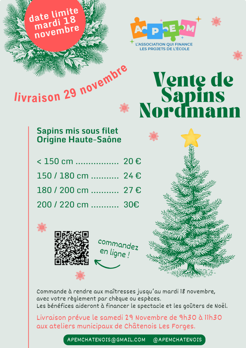 Vente de SAPINS DE NOËL au profit de l'école materne