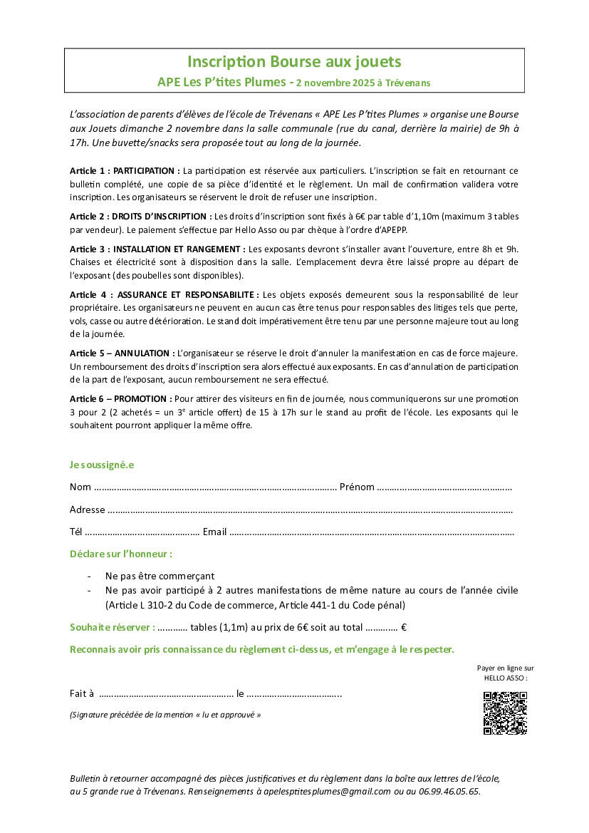Bourse aux jouets le 2 novembre à Trévenans 🧸
