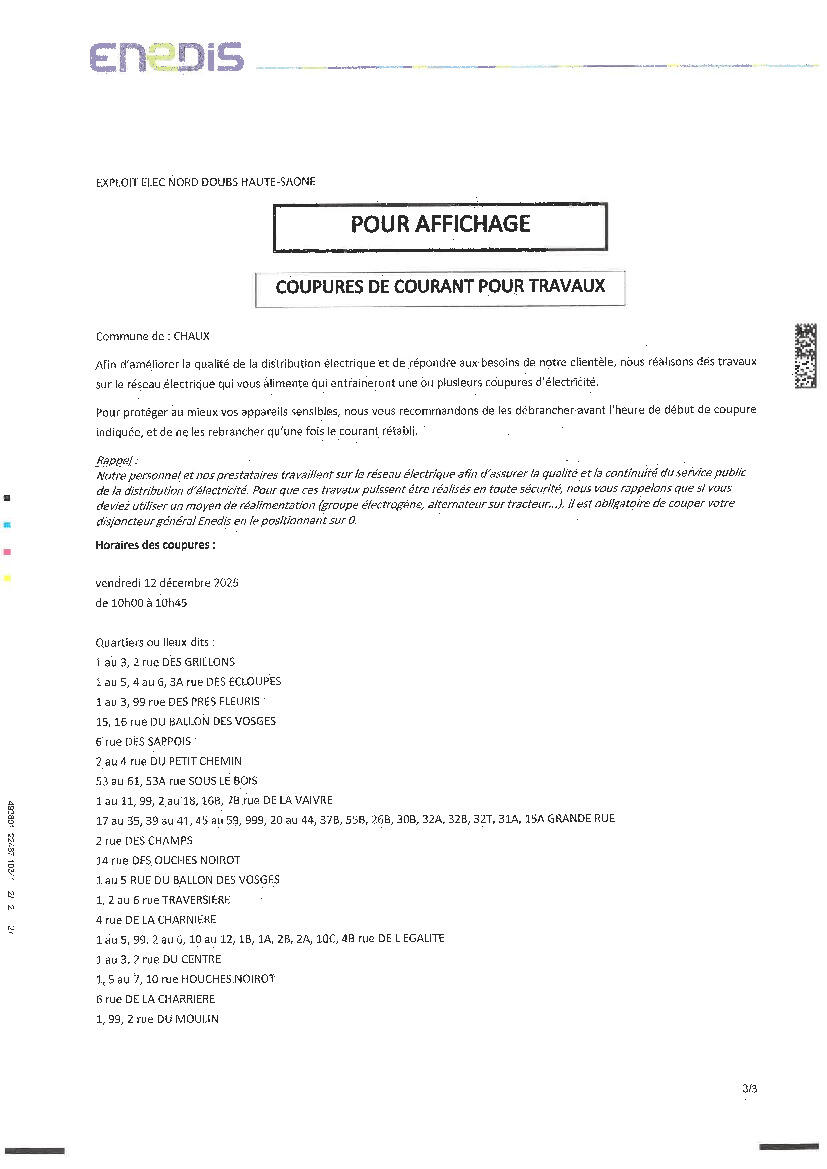 Coupure de courant électrique le 01 décembre matin