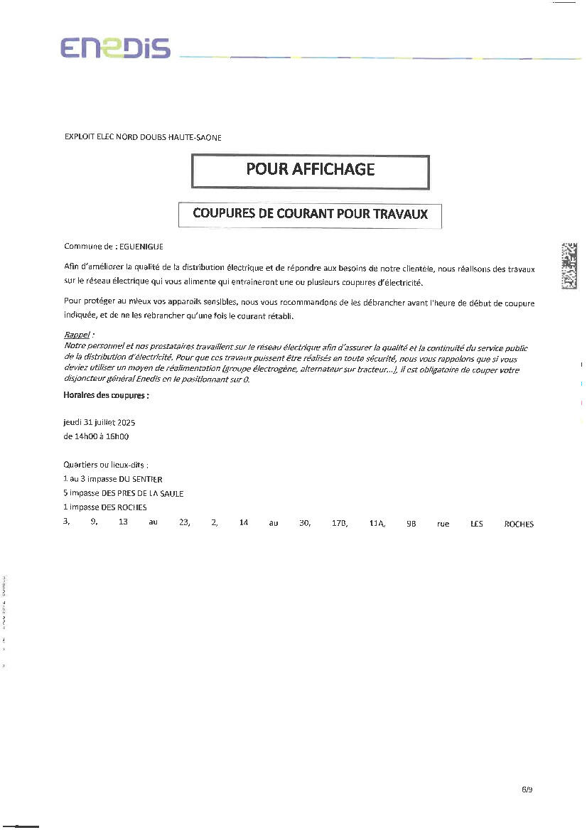 Su ayuntamiento / Noticias / Coupure de courant sur la commune