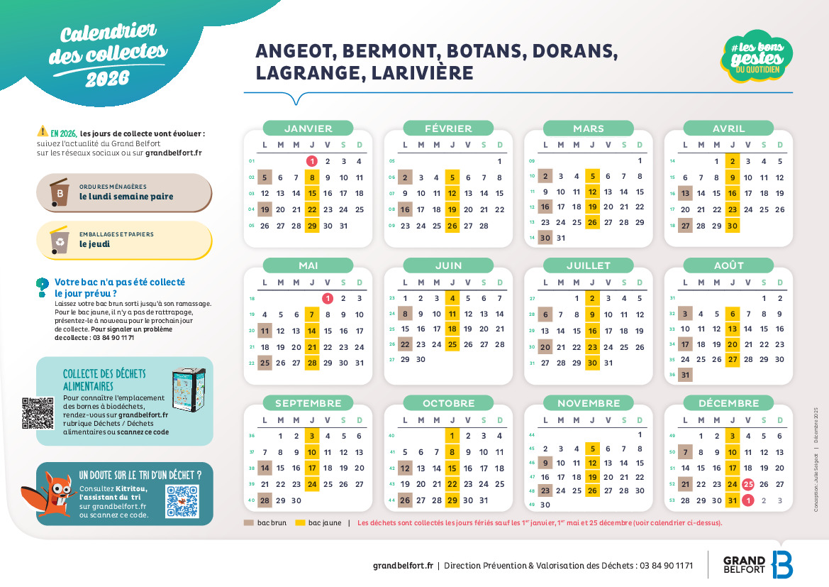 Calendrier des collectes de déchets 2026