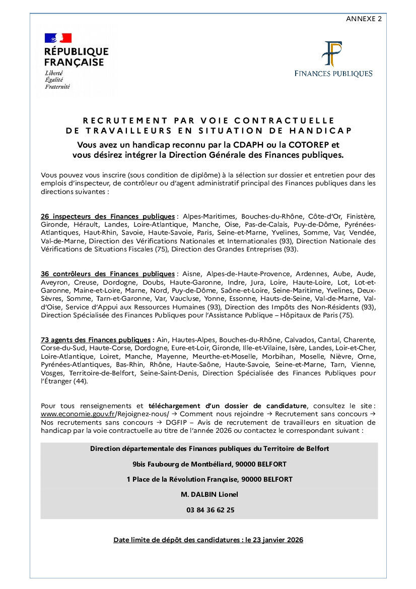 Concernant la Direction départementale des Finances publiques du Territoire de Belfort :