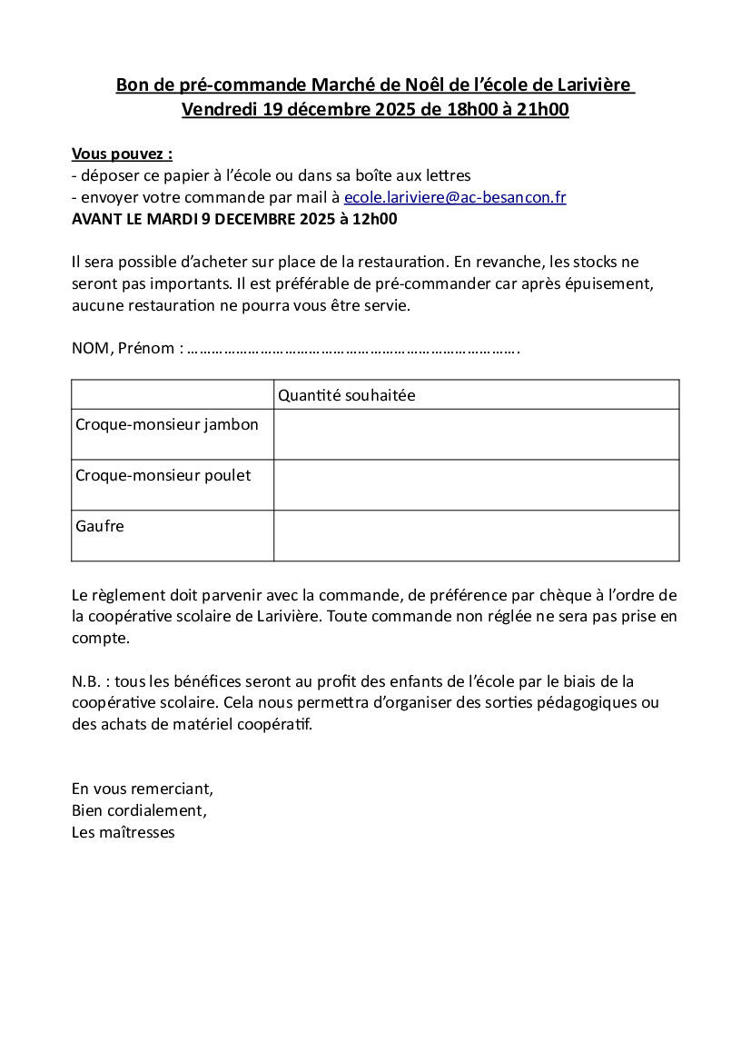 Le corps enseignant de l'école de Larivière, vous attend nombreux pour partager un moment convivial et festif.