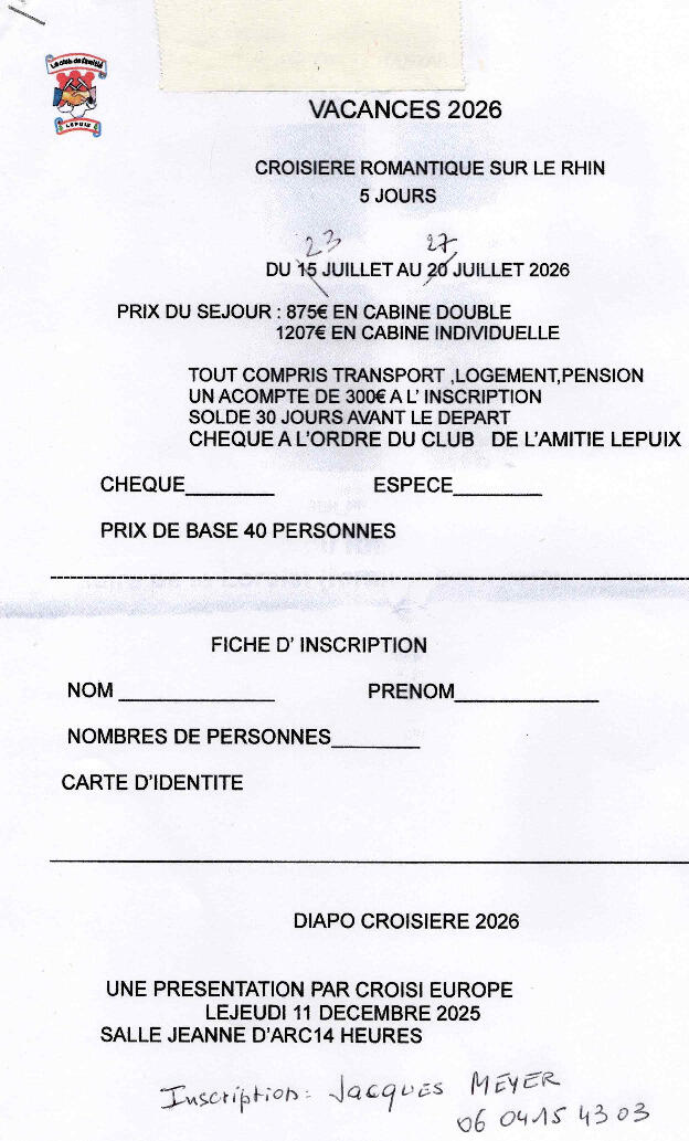Croisière du club de l'amitié de Lepuix