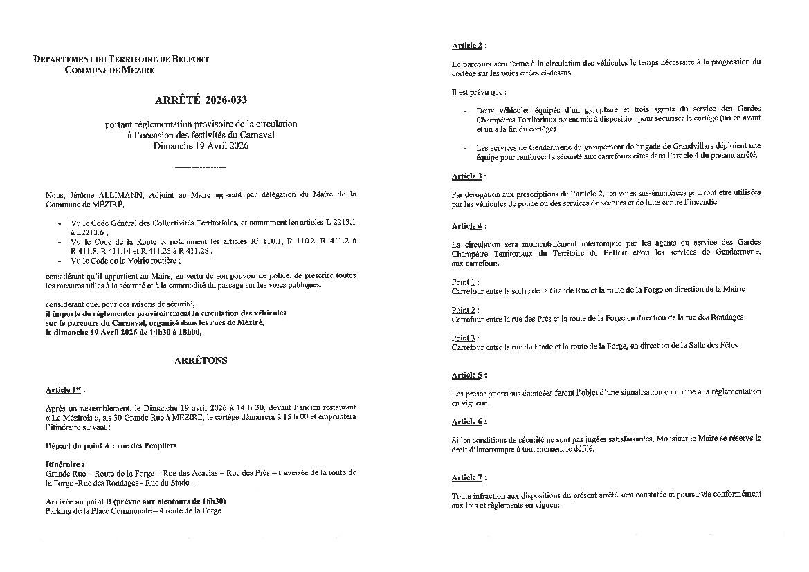 CARNAVAL 2026 - Réglementation circulation