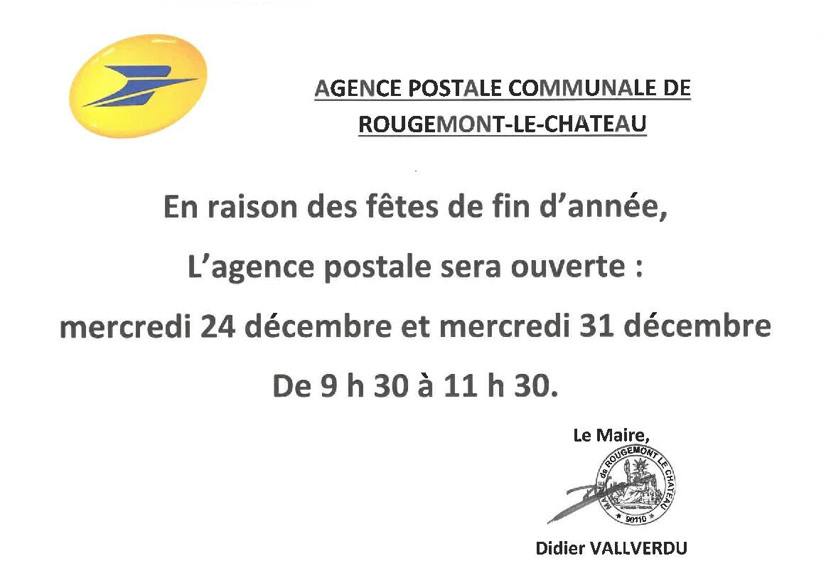 Fermeture exceptionnelle de l'Agence Postale Communale