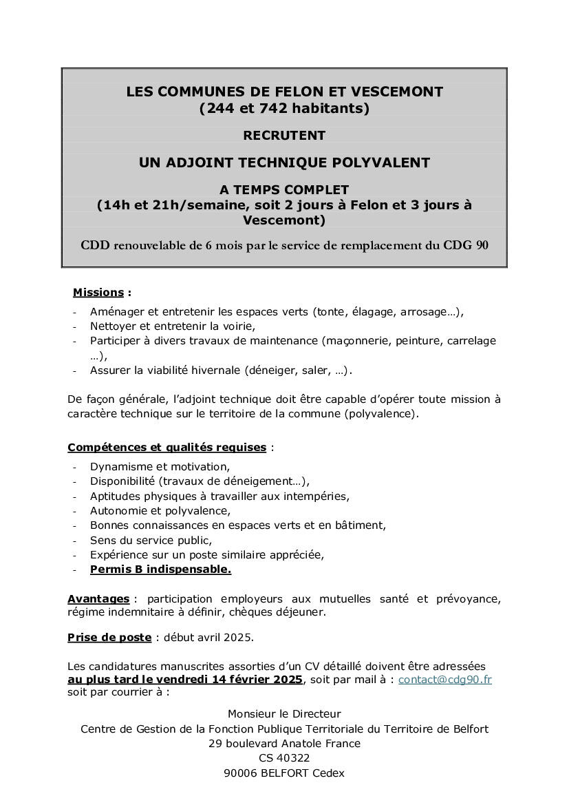 Su ayuntamiento / Noticias / Offre d'emploi - AGENT TECHNIQUE POLYVALENT