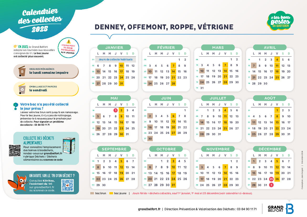 Changement des collectes bac brun et jaune.