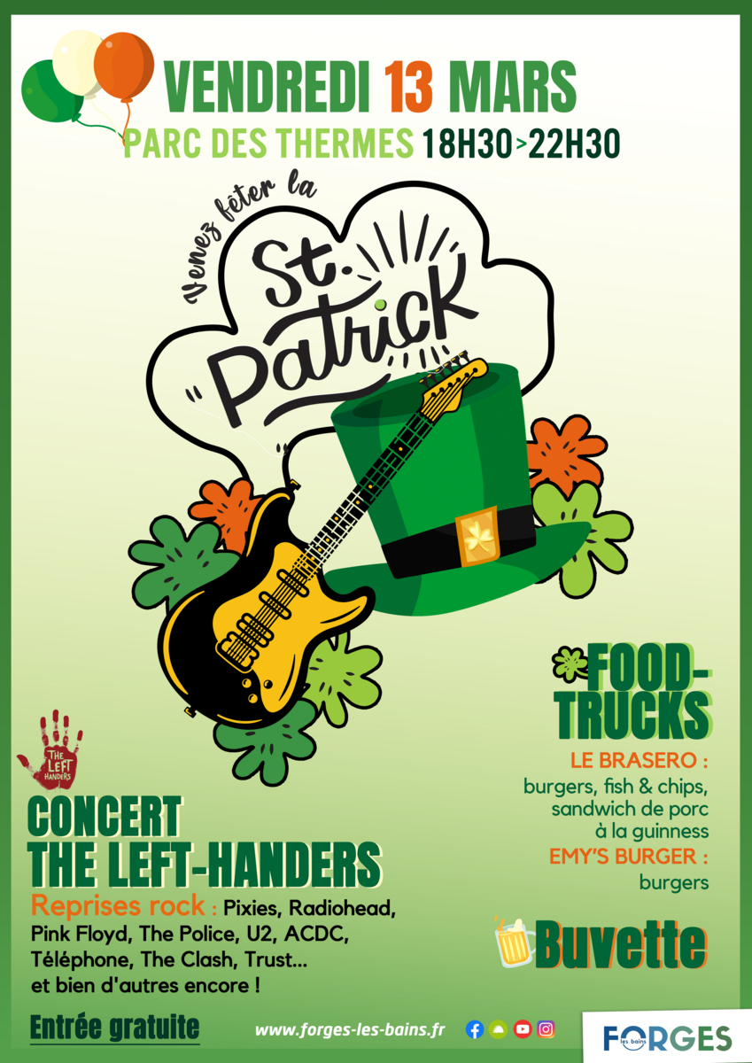 🔜 Rendez-vous VENDREDI dès 18h30 au parc des Thermes pour célébrer ensemble la traditionnelle fête irlandaise 🎶☘️🍀 🇮🇪