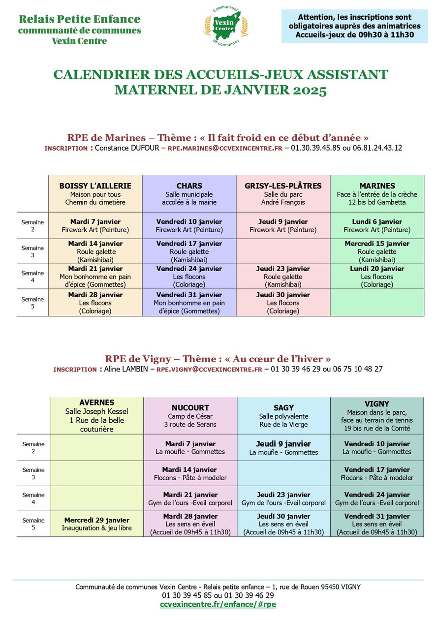 Su ayuntamiento / Noticias / Planning des accueils-jeux du RPE (Relais Petite Enfance) pour le mois de janvier 2025