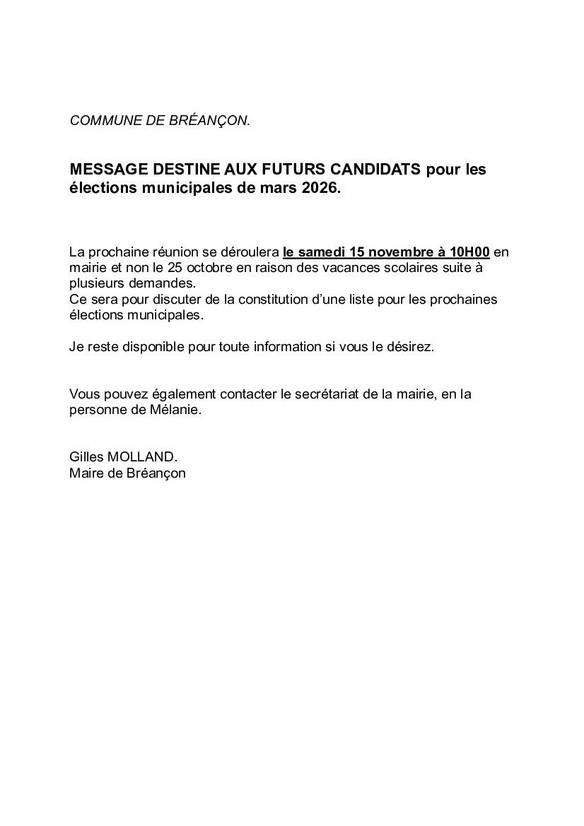 PROPOSITION DE RÉUNION ELECTIONS MUNICIPALES DE MARS 2026