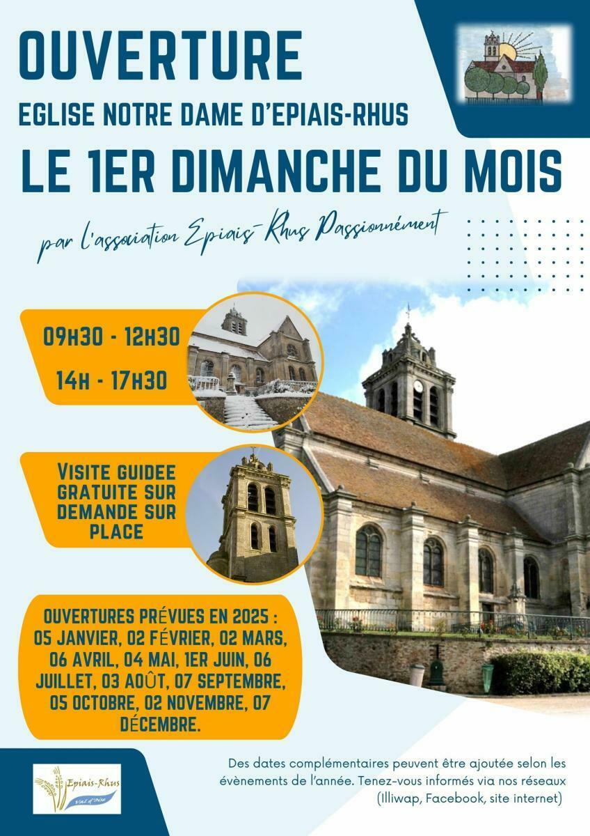 - Tous les premiers dimanches du mois de 9h30 à 12h30 et 14h à 17h30 : ouverture de l’Église.
