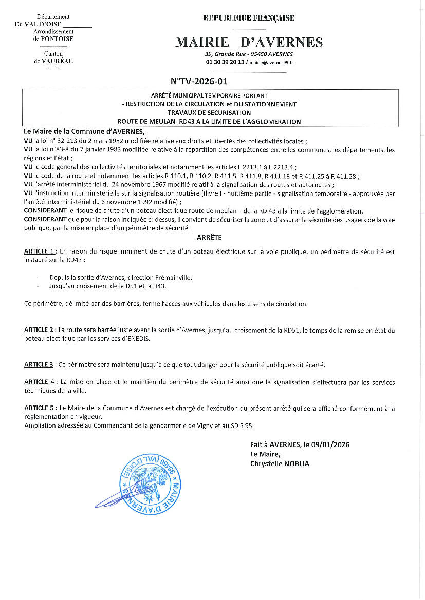 Fermeture temporaire route RD43 Avernes Frémainville