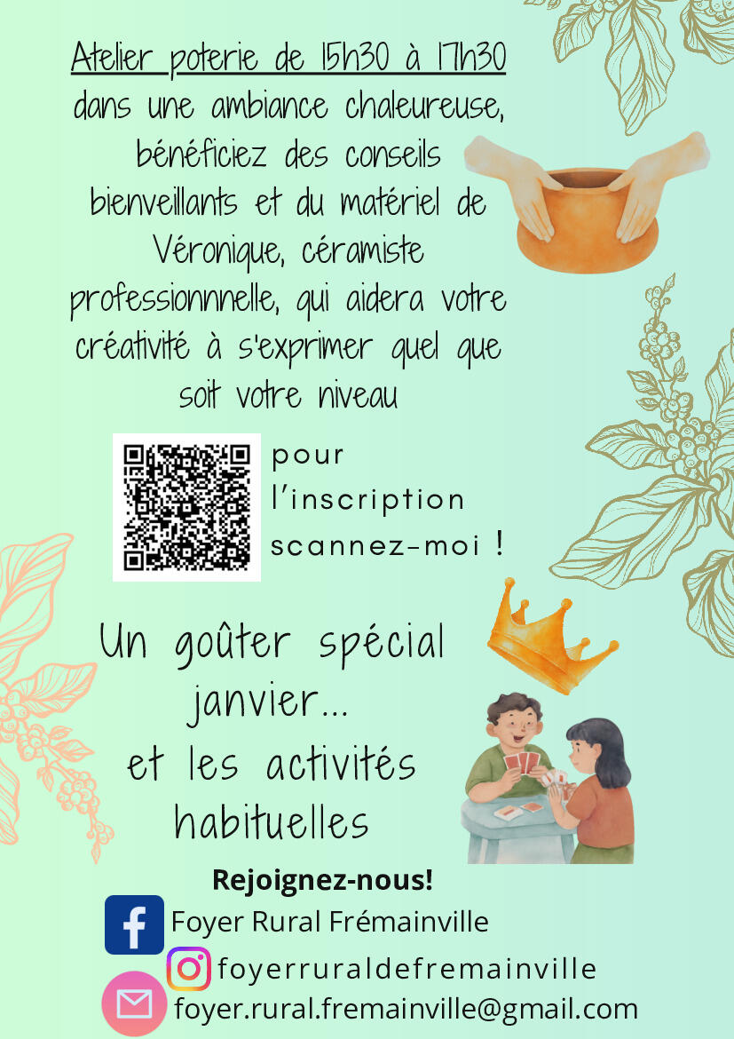 Dimanche 18/01 de 15h à 18h à la maison du village