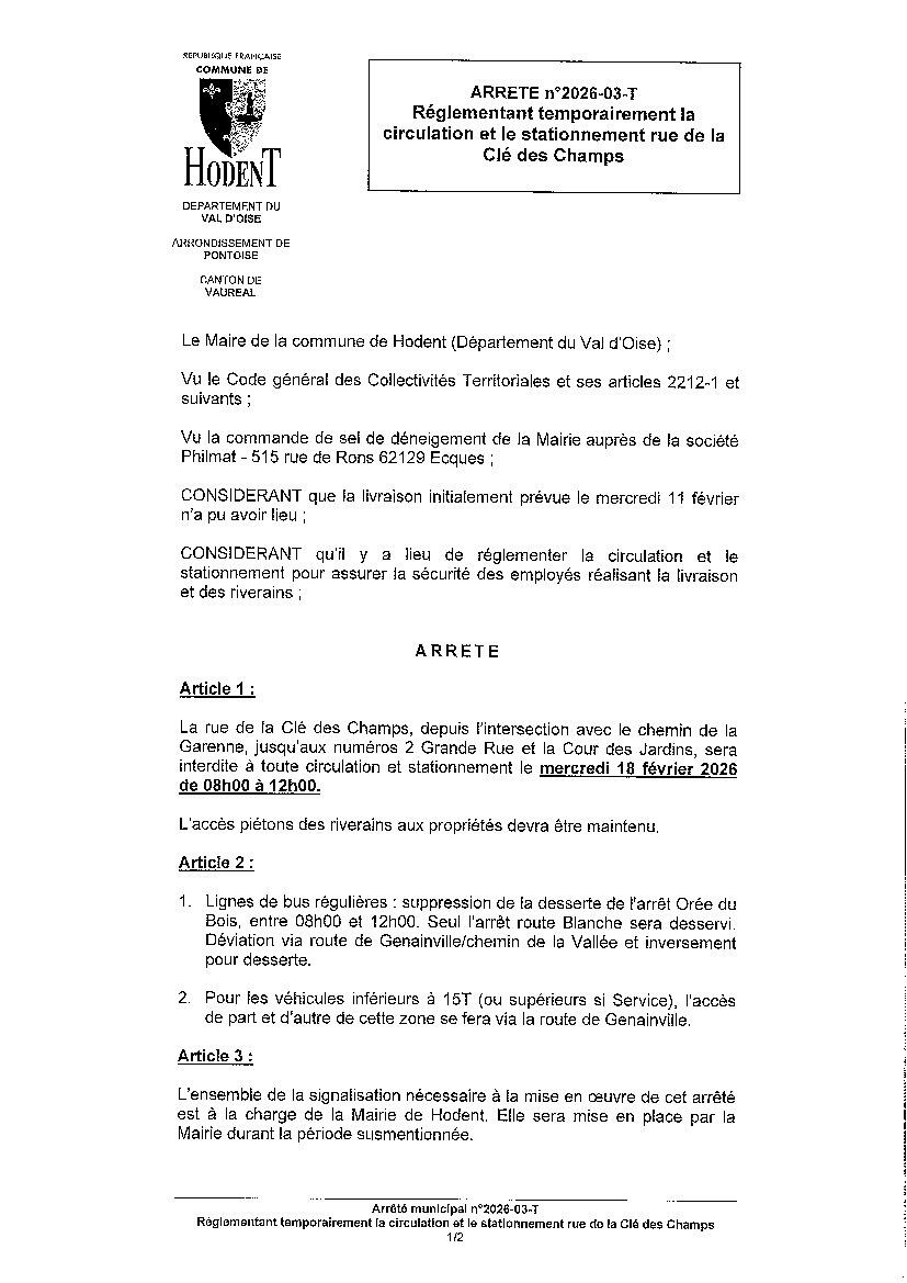 Arrêté temporaire de circulation - desserte bus Orée du Bois