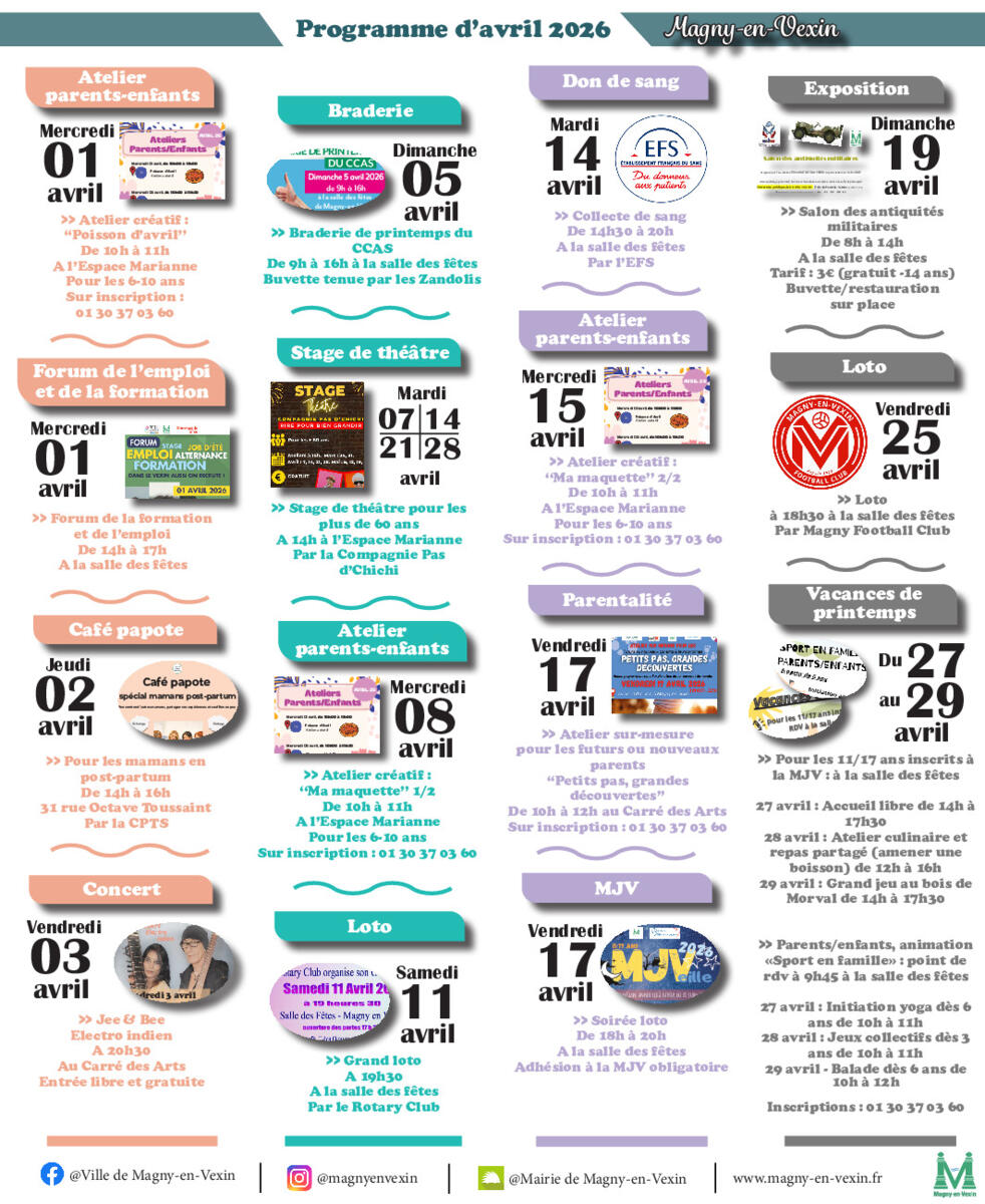 [Agenda] Les rendez-vous d'avril 📅 26/3/26 Retrouvez l'agenda du mois de mars de Magny-en-Vexin ! ⤵