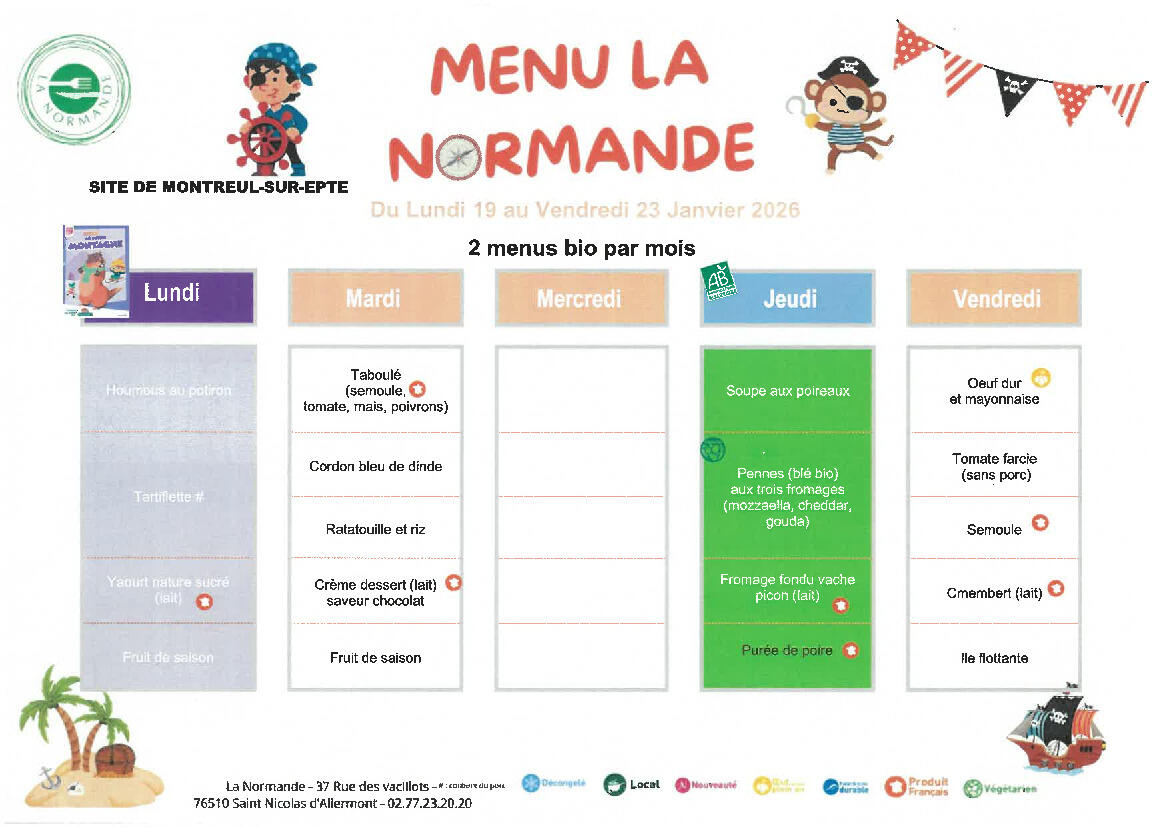 MENUS SIIS BUHY - LA CHAPELLE-EN-VEXIN ET MONTREUIL-SUR-EPTE 16/1/26 馃摙 du 19 au 23 janvier 2026 par site de restauration聽馃憞