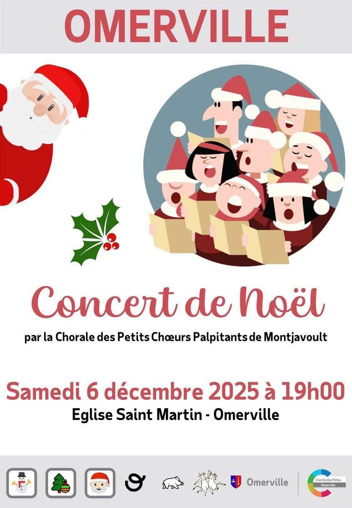 19h : Concert de Noël dans l'église Saint-Martin d'Omerville par la chorale des Petits Chœurs Palpitants de Montjavoult