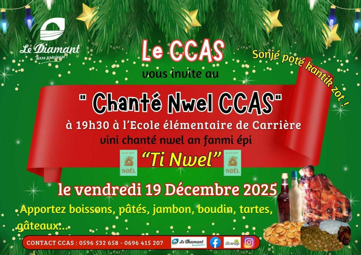 ๐Ÿ“ฃ La Ville du DIAMANT et son CCAS vous convient ร  sa manifestation intitulรฉeย  "๐—–๐—ต๐—ฎ๐—ป๐˜๐—ฒฬ ๐—ก๐˜„๐—ฒ๐—น ๐—–๐—–๐—”๐—ฆ" :ย