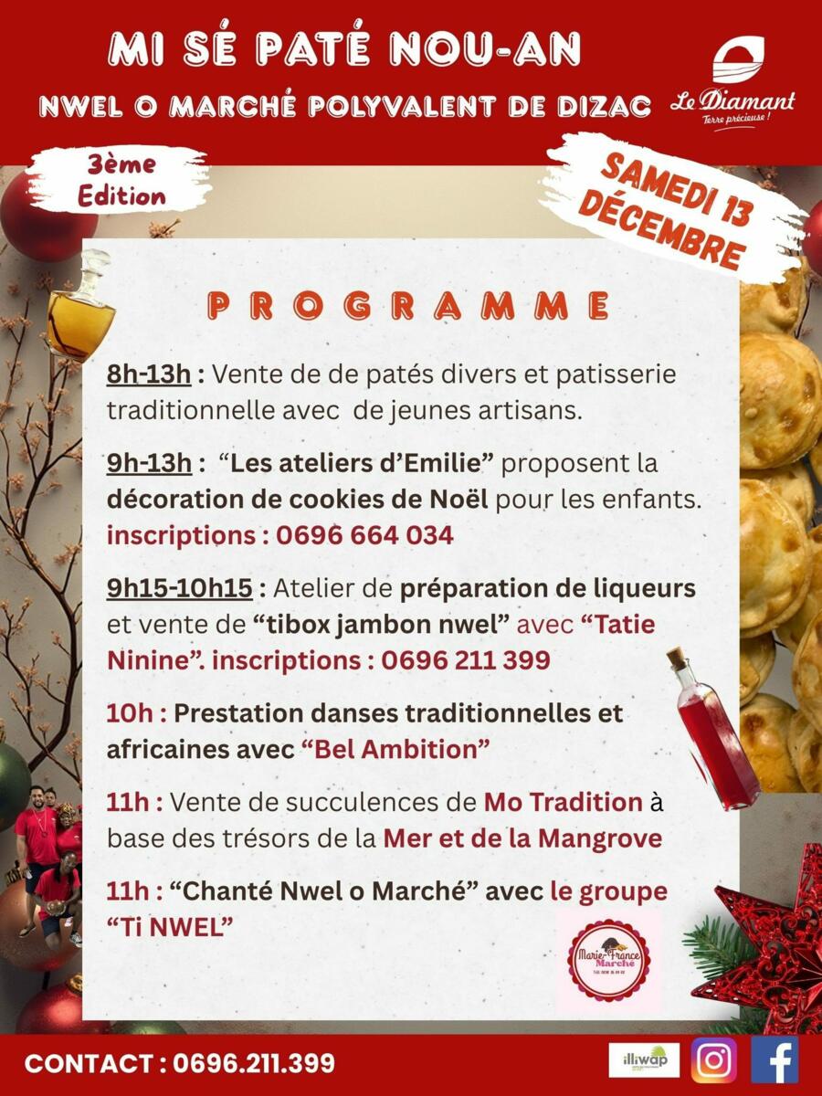 Pour la 3ème Edition, le Marché présente "𝗠𝗜 𝗦𝗘 𝗣𝗔𝗧𝗘 𝗡𝗢𝗨-𝗔𝗡", l'une des reines des tables de Noël : patrimoine culinaire martiniquais, trois artisans présenteront des pâtés salés mais aussi de la pâtisserie traditionnelle et autres.