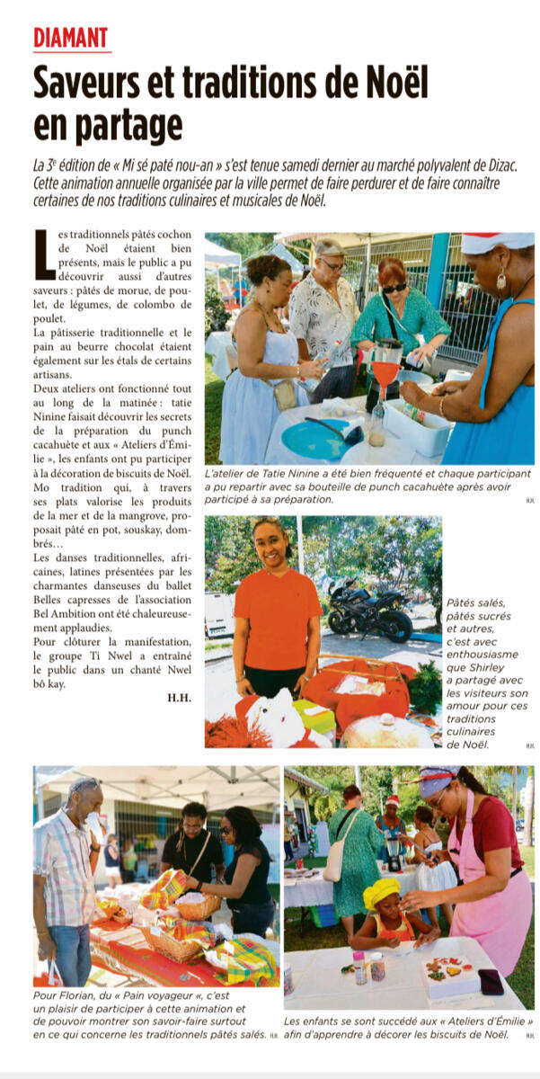 📰Dans son édition du mercredi 17 décembre 2025, le quotidien France-Antilles Martinique consacre un article sur la tenue de la 3ème édition de la manifestation "𝑴𝒊 𝑺𝒆́ 𝑷𝒂𝒕𝒆́ 𝑵𝒐𝒖-𝑨𝒏" organisée par la Municipalité au Marché Polyvalent de Dizac, le samedi 13 décembre 2025.