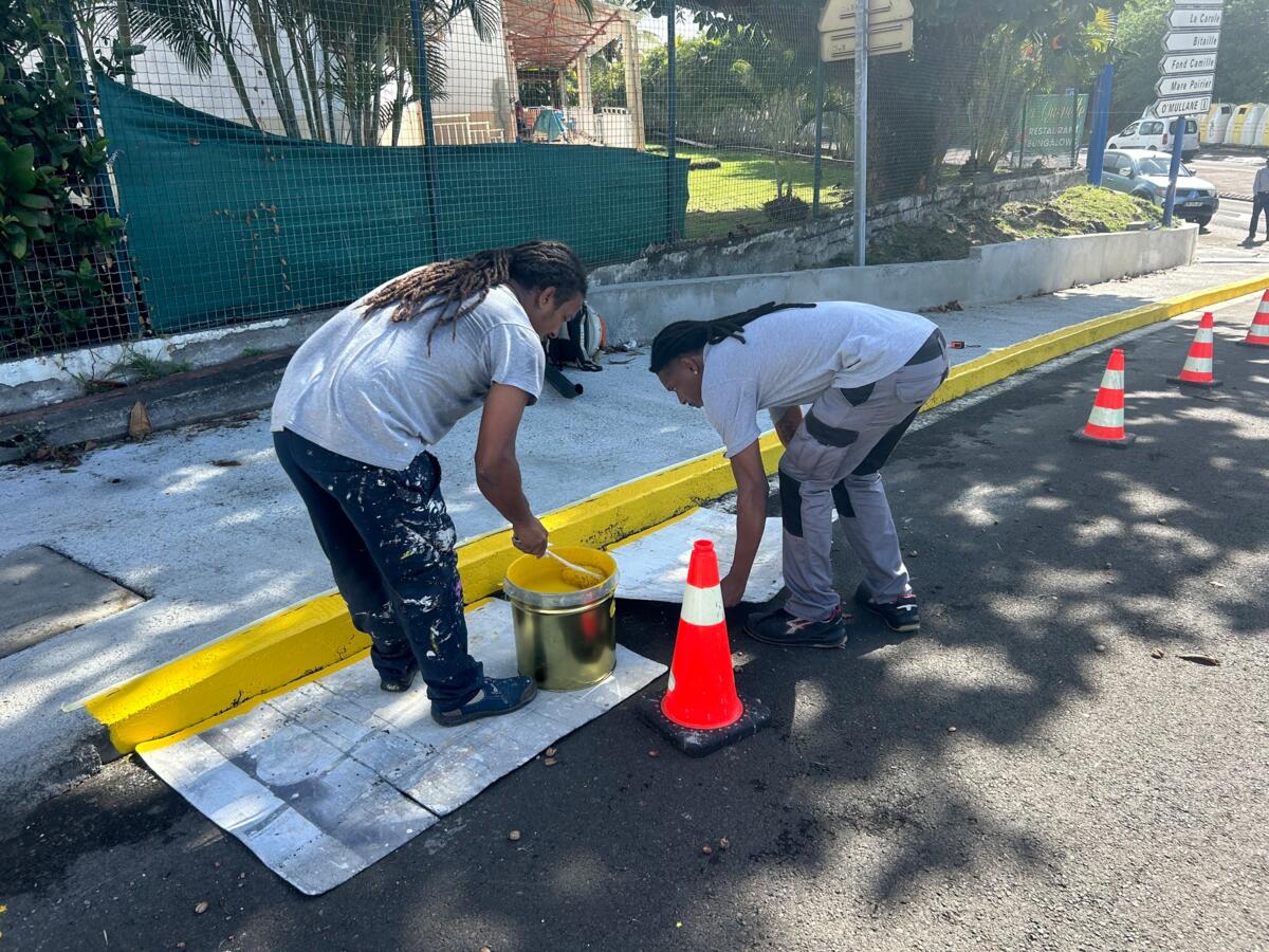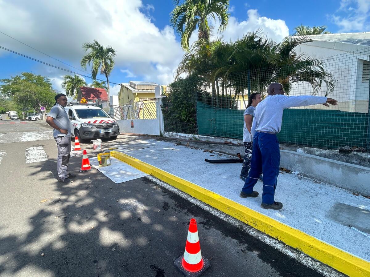 Dans ce cadre, les Services Techniques ont procédé à des travaux de peinture de signalisation des trottoirs.