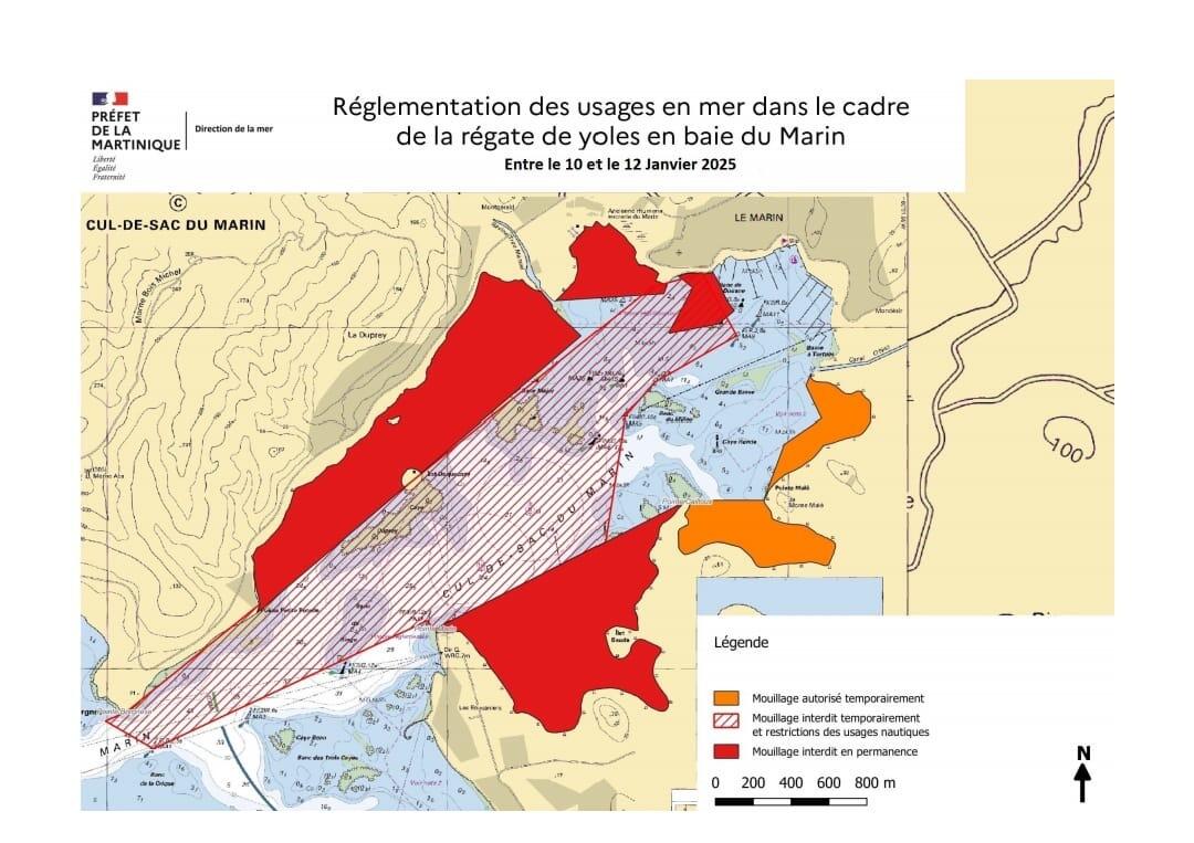 Dans le cadre du Grand Prix de la Ville du Marin de Bébés Yoles, le mouillage sera temporairement interdit dans la baie du Marin. Voir plan joint !