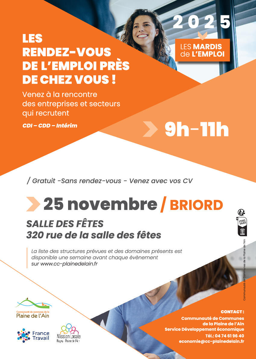 Mardis de l'emploi 2025 -Briord 25 novembre Salle des Fêtes