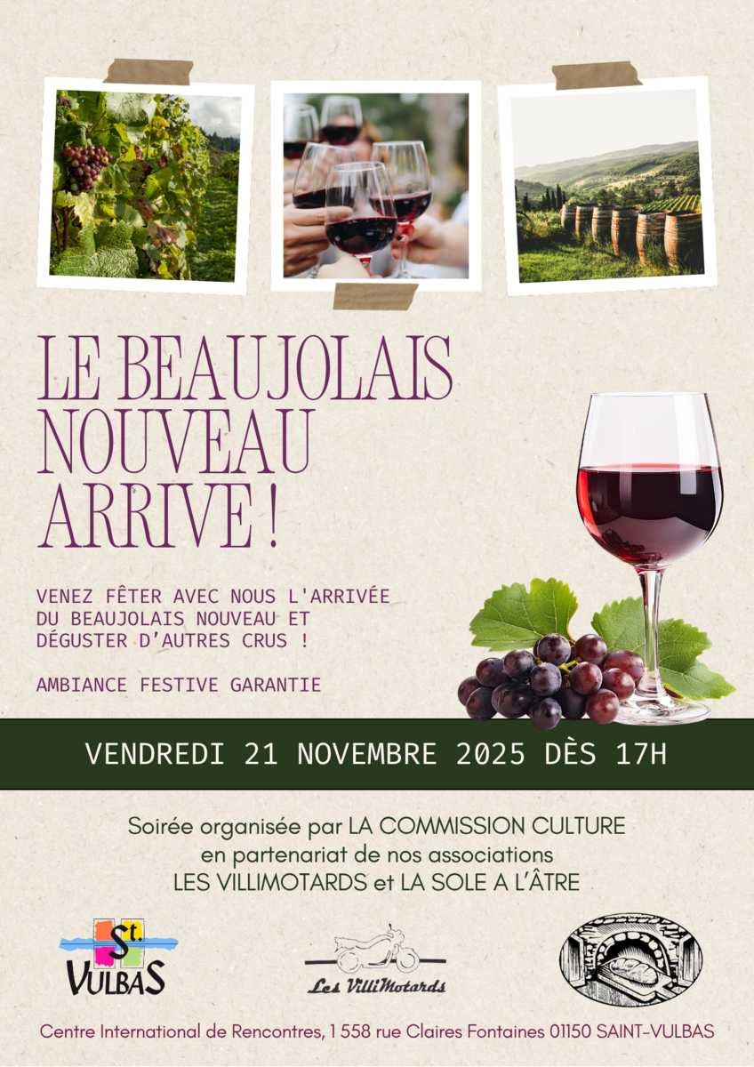 Su ayuntamiento / Noticias / Soirée Beaujolais Nouveau le 21/11