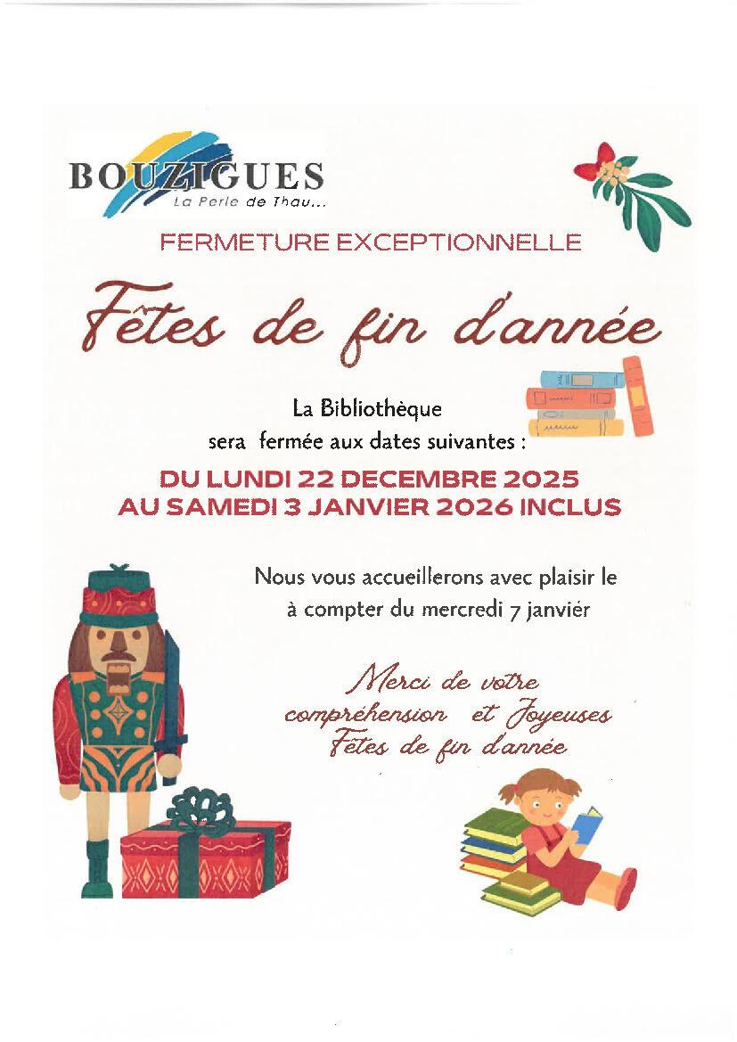 FETES DE FIN D'ANNEE - FERMETURE DE LA BIBLIOTHEQUE