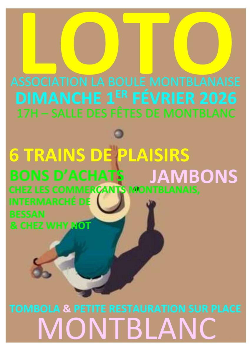 DIMANCHE 1ER FEV. À 17H : LOTO DE LA BOULE MONTBLANAISE