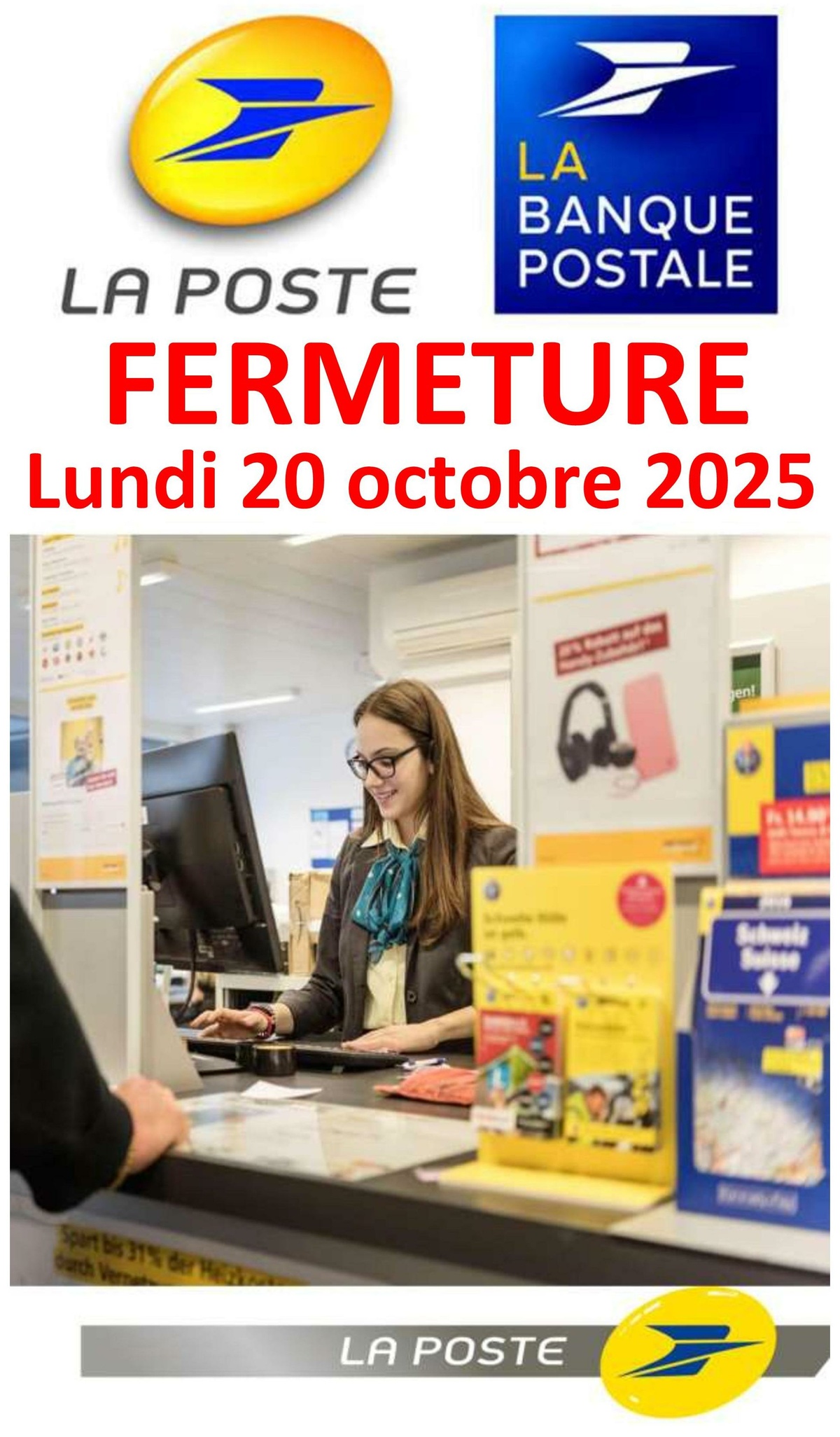CE LUNDI 20 OCT. : FERMETURE DU BUREAU DE POSTE