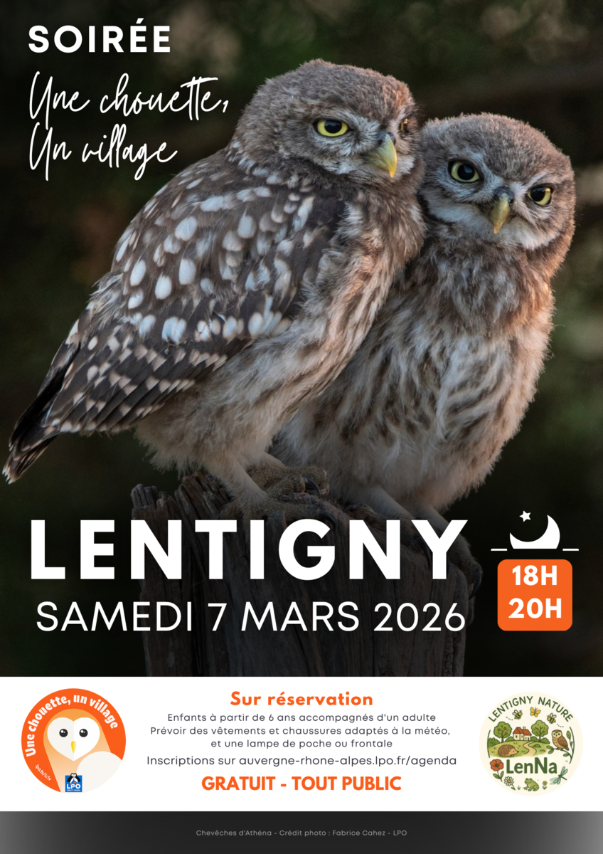 Le samedi 7 mars, la LPO AURA - Loire et l’association Lentigny Nature – LenNa vous invitent à une soirée originale et conviviale autour des rapaces nocturnes, dans le cadre de l'opération "Une Chouette, Un Village".