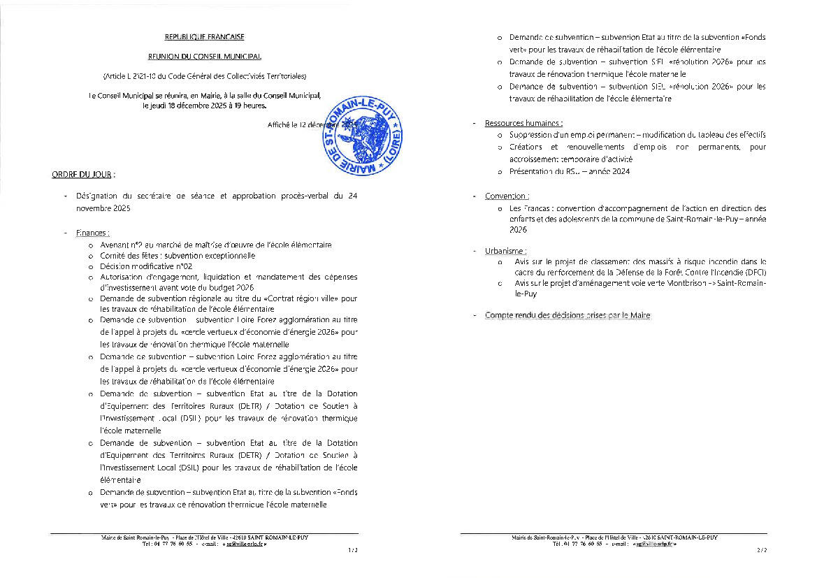 Conseil municipal - Séance du 18 décembre 2025