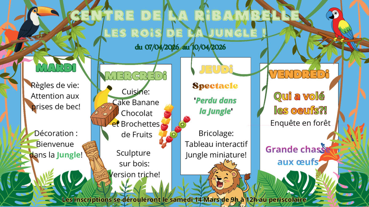 Programme et inscriptions au Centre de Loisirs d'Avril 2026